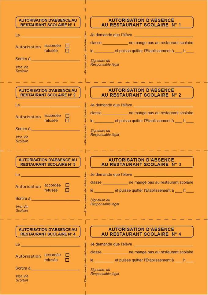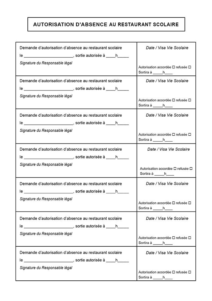 > Autorisation d'absence restaurant scolaire bulletins
