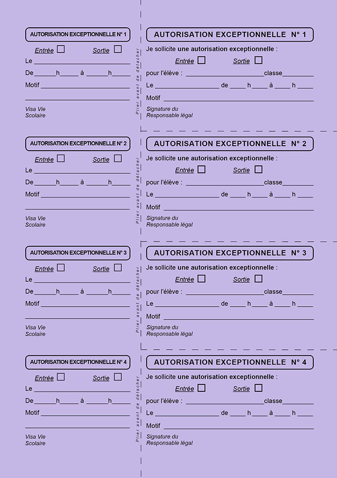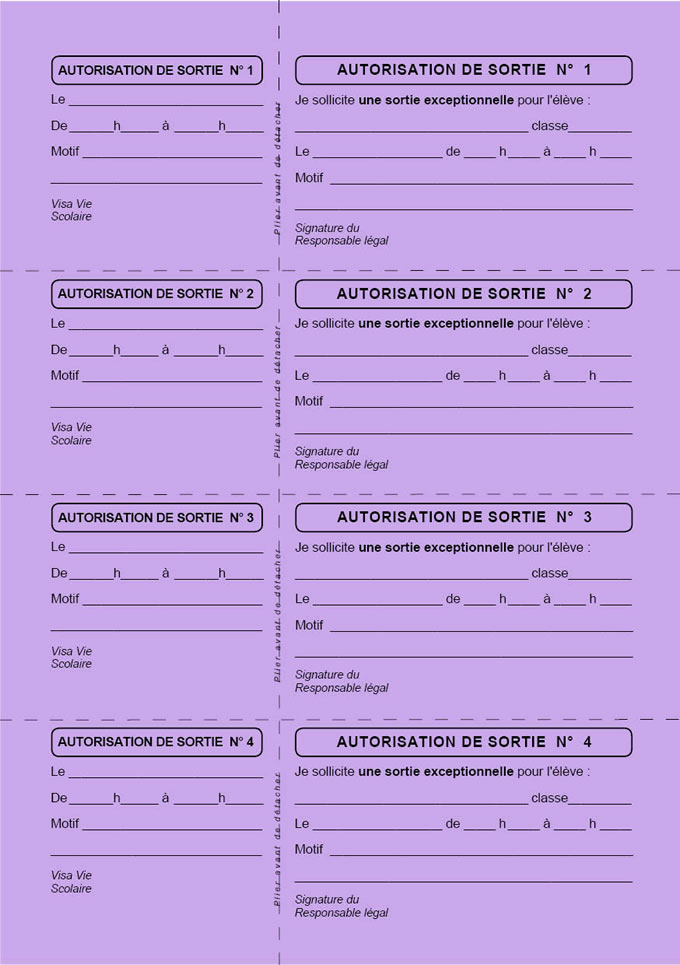 AUTORISATION DE SORTIE bulletins