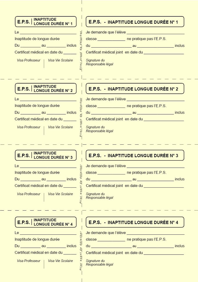 EPS - INAPTITUDES DE LONGUE DUREE bulletins