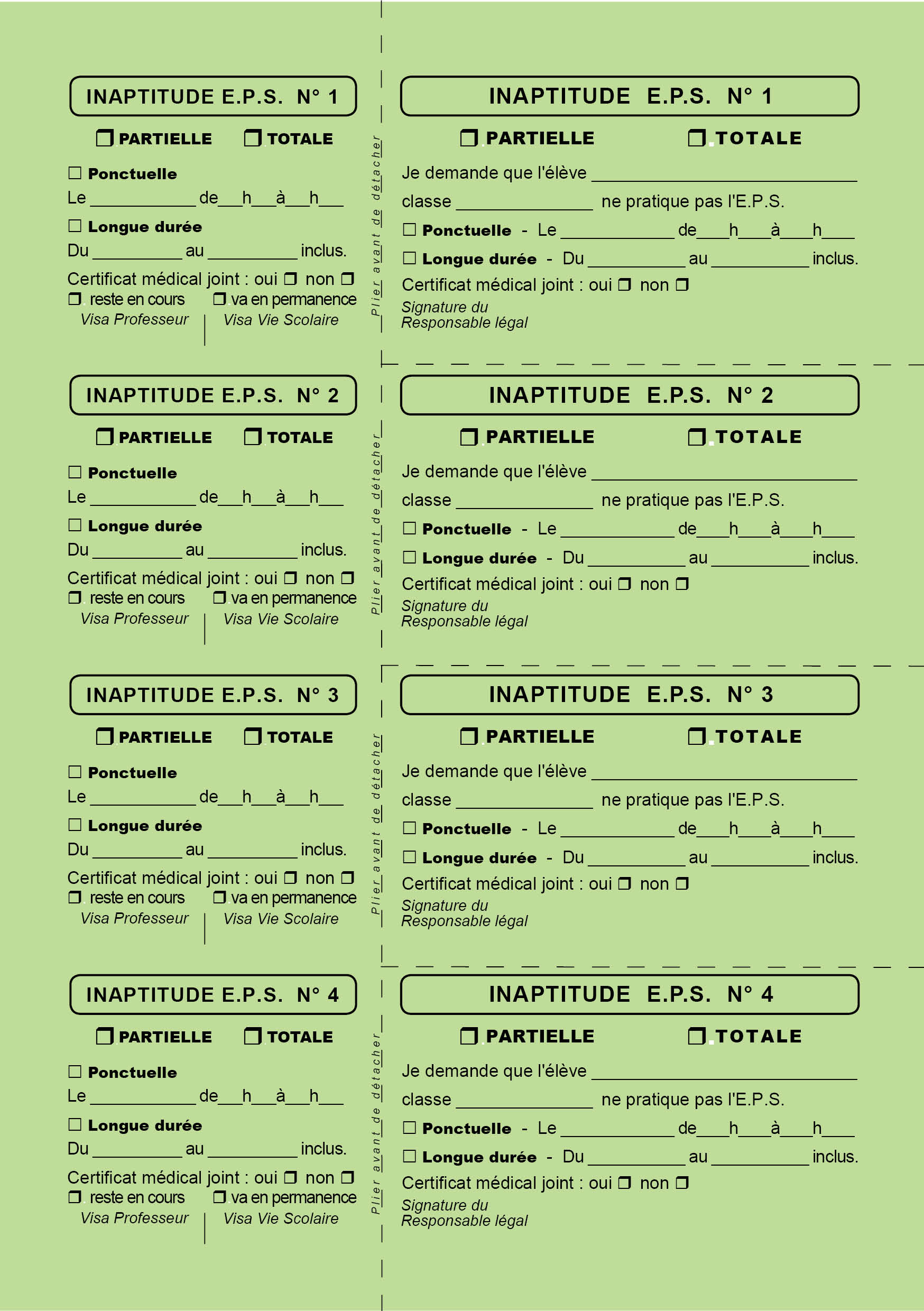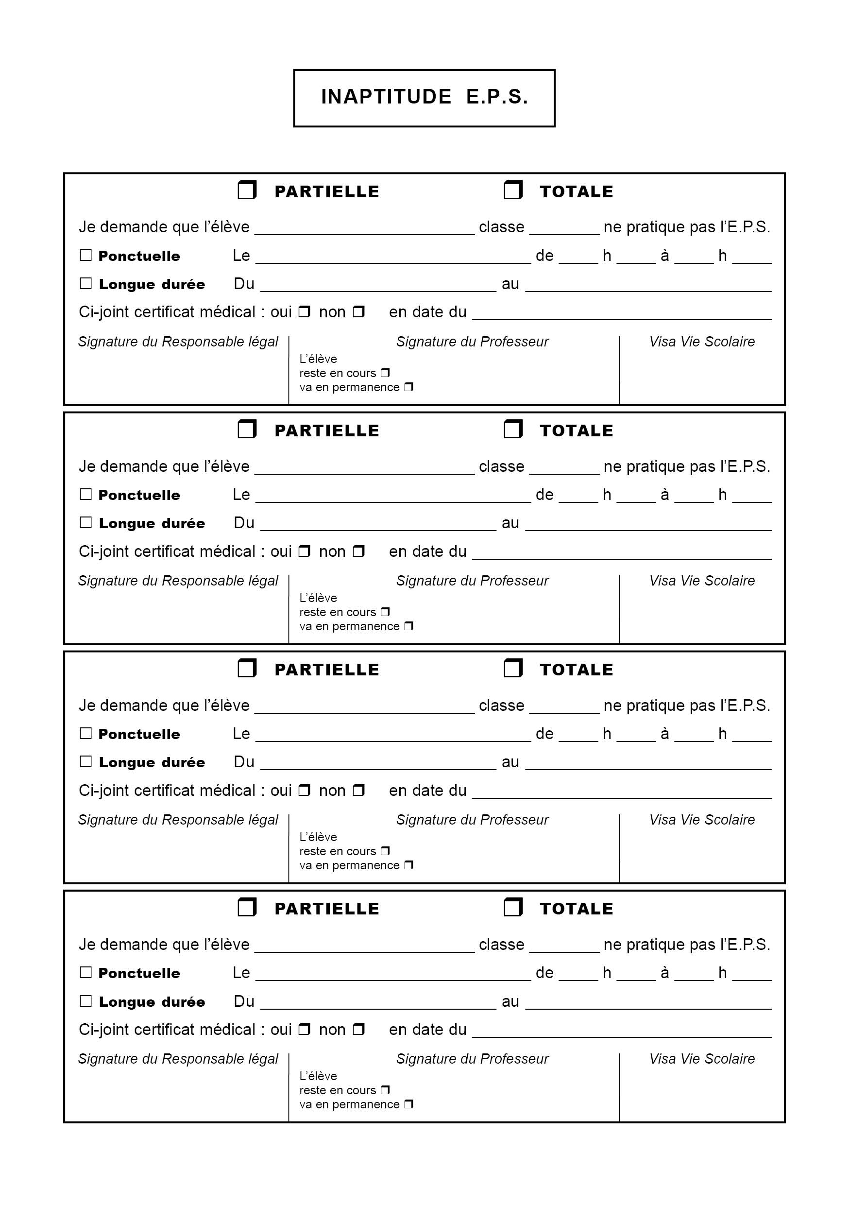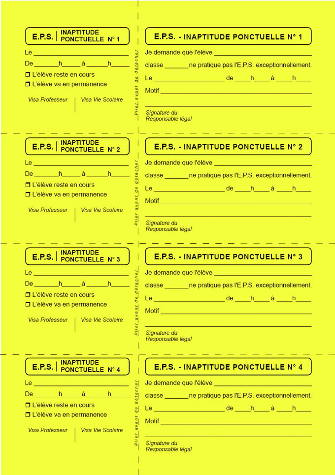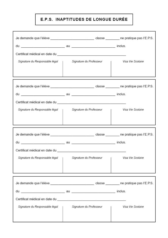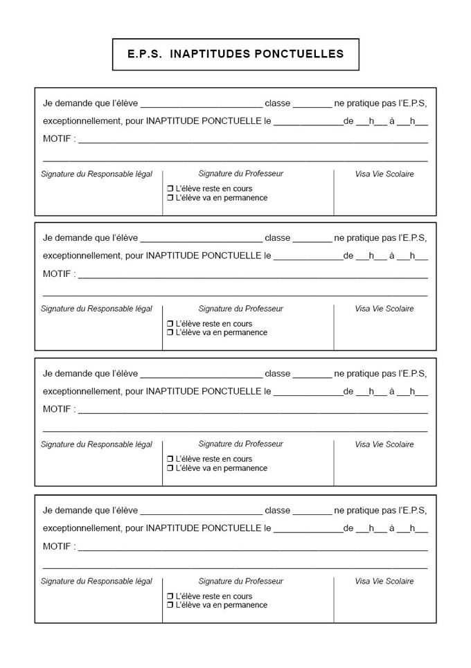 EPS - INAPTITUDES PONCTUELLES bulletins