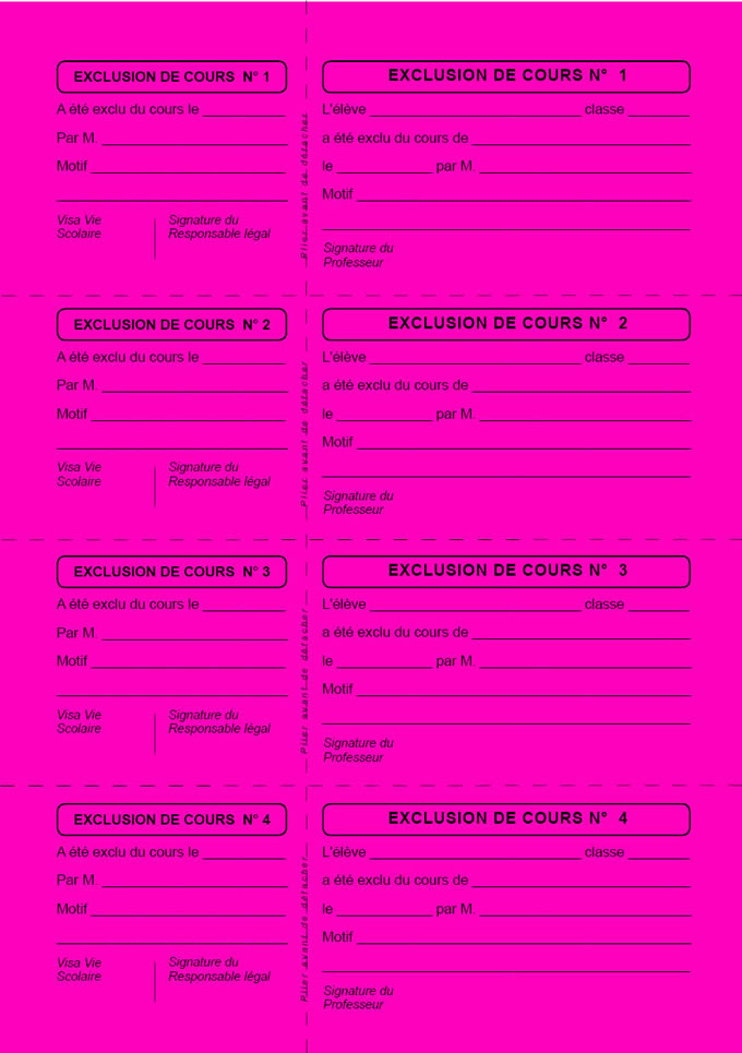 EXCLUSION DE COURS bulletins
