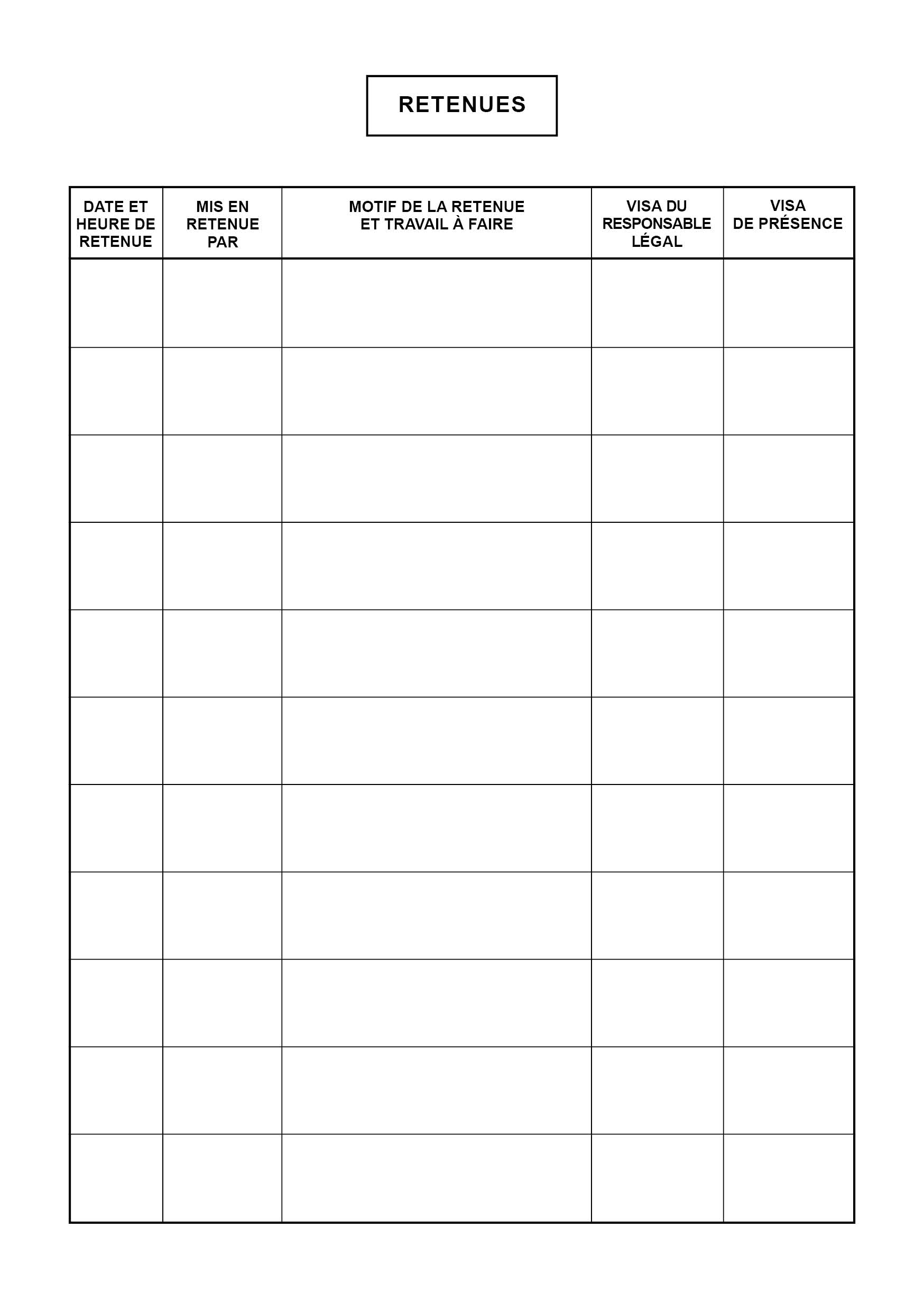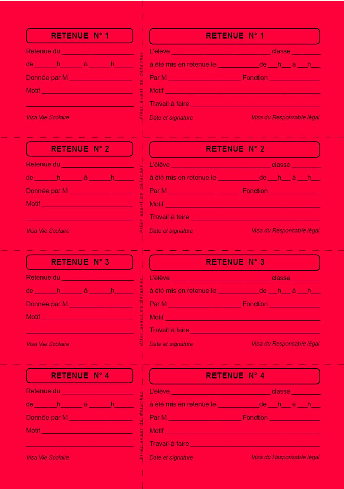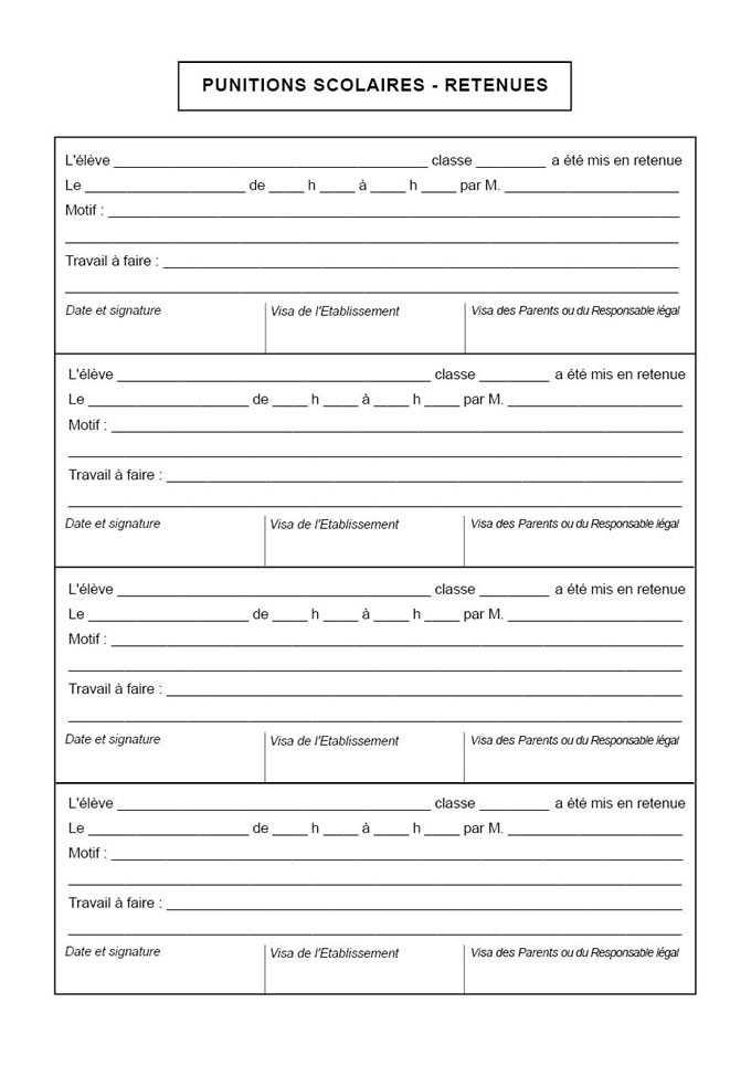 RETENUES (Titre : PUNITIONS SCOLAIRES)