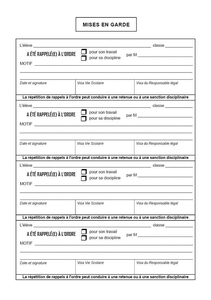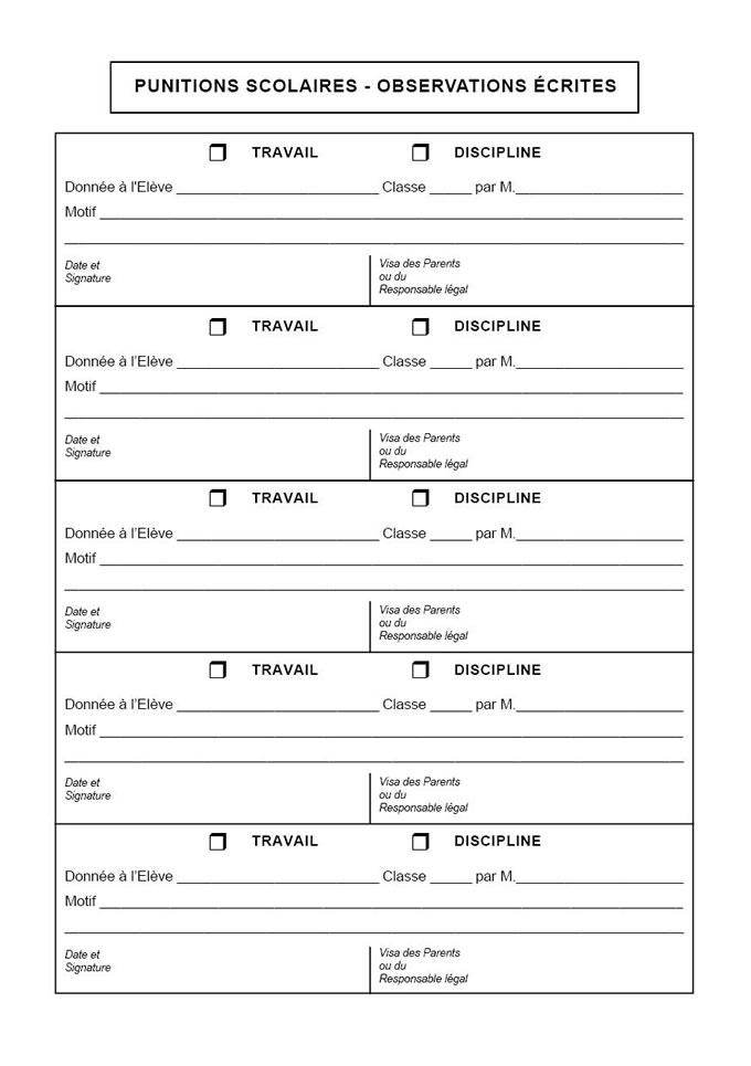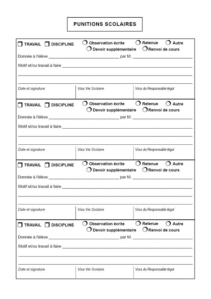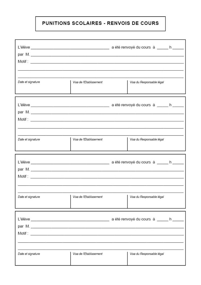 > Renvois de cours (titre : punitions scolaires)