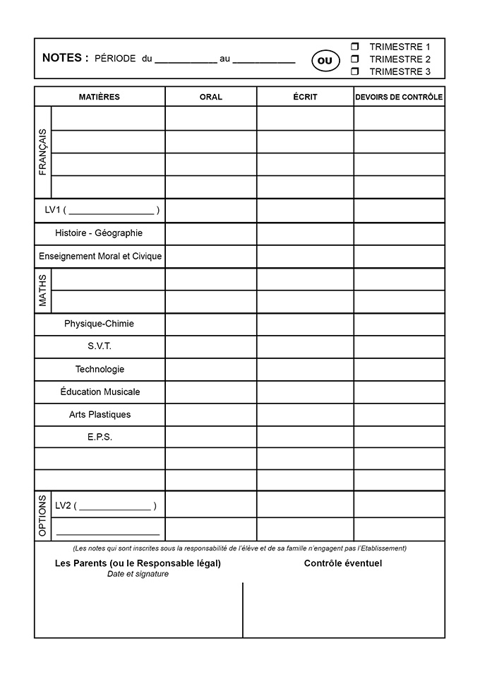 NOTES PAR PERIODE OU PAR TRIMESTRE