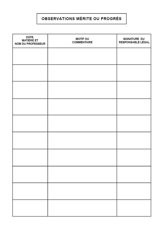 > Observations merite ou progres