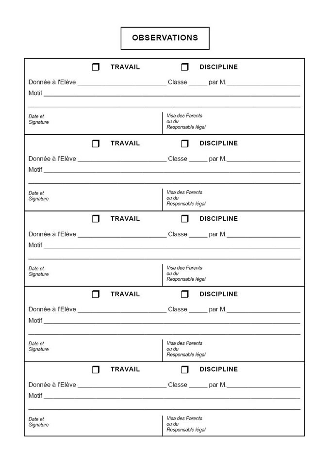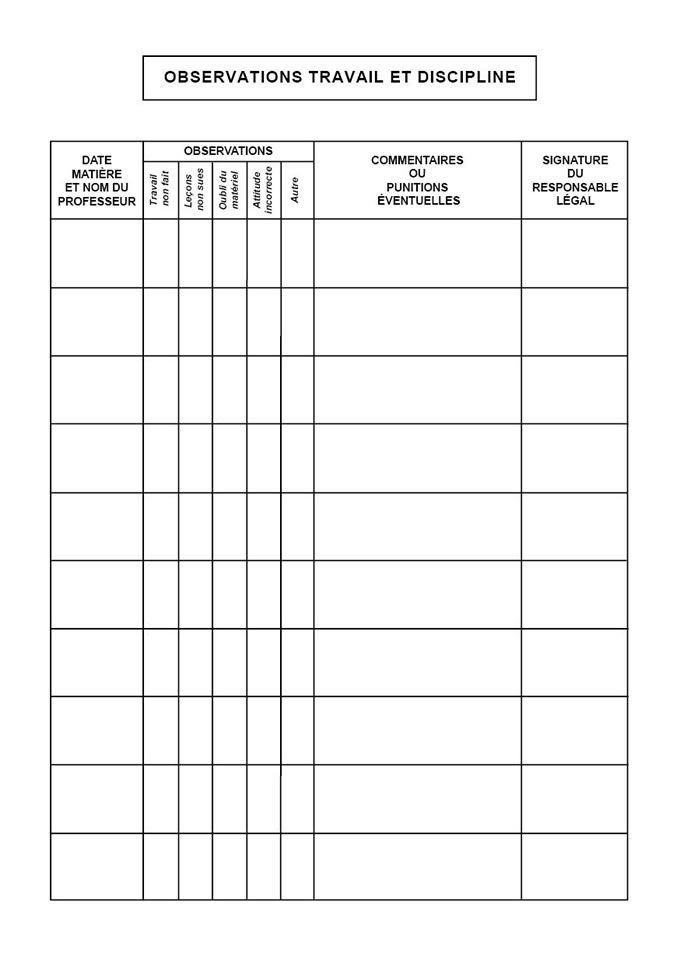 > Observations travail et discipline
