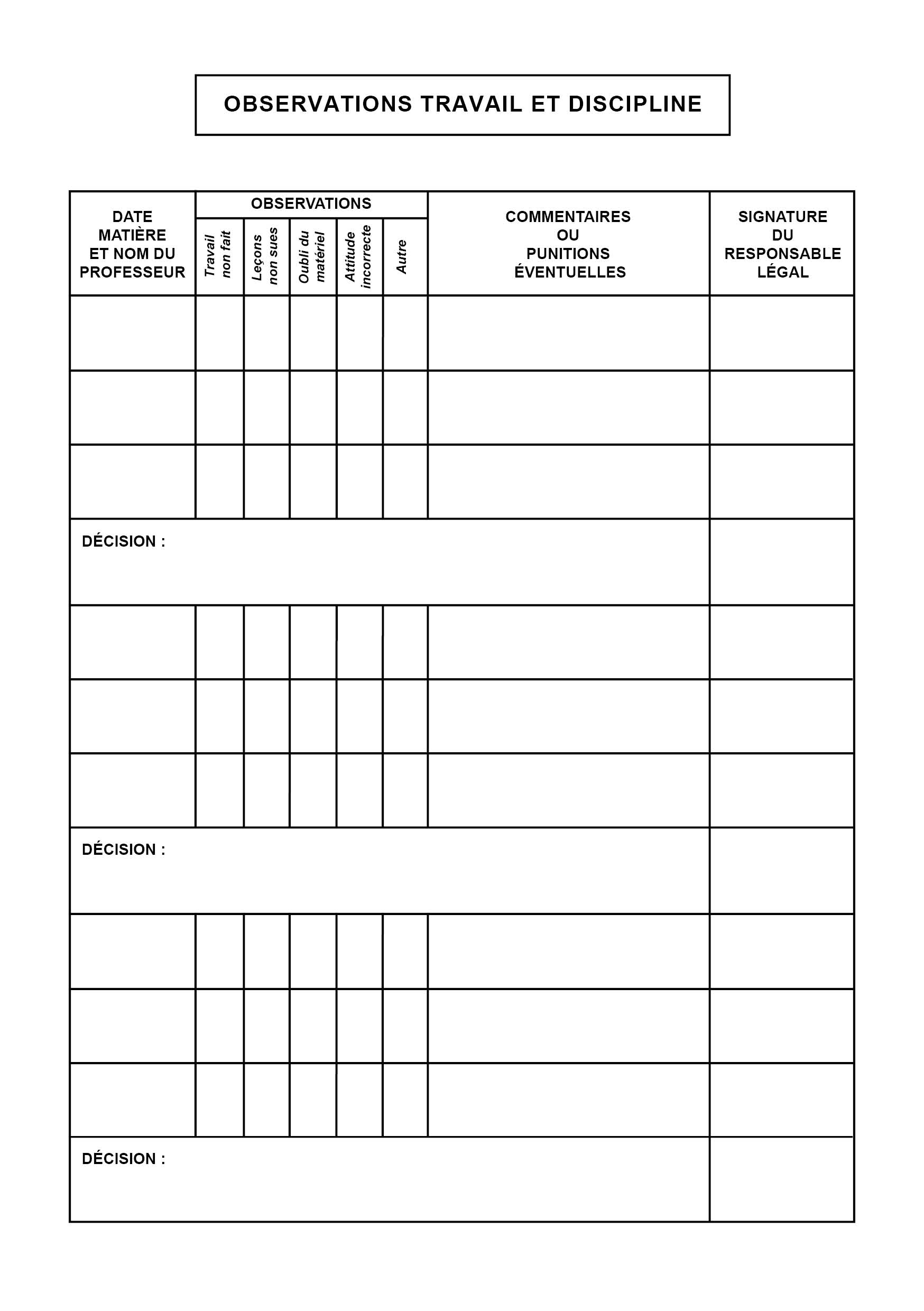> Observations travail et discipline - 3 obs = 1 décision