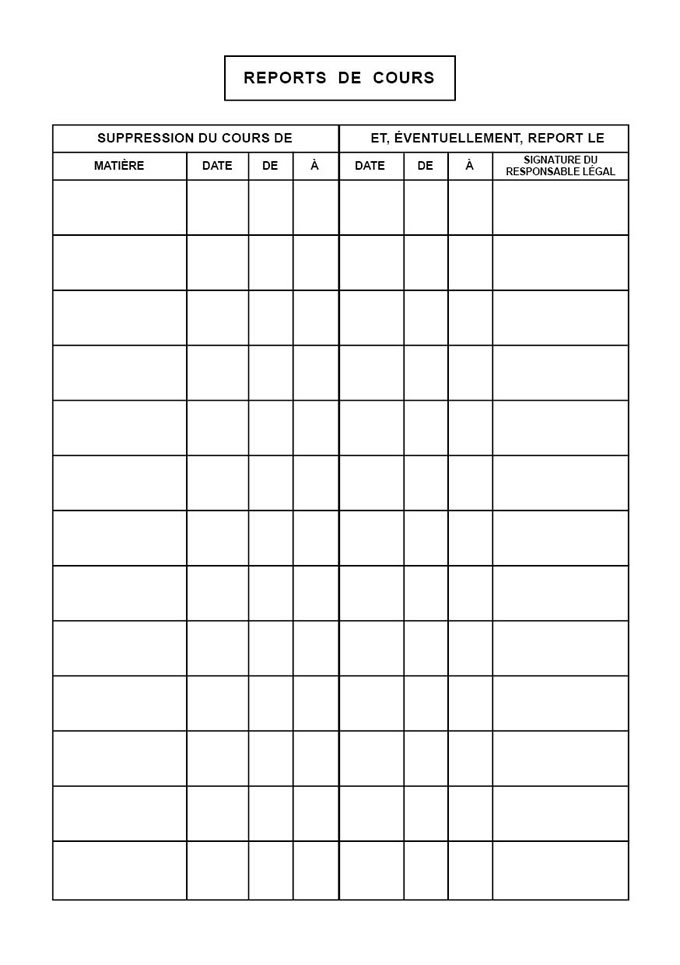 RENVOIS DE COURS EN TABLEAU